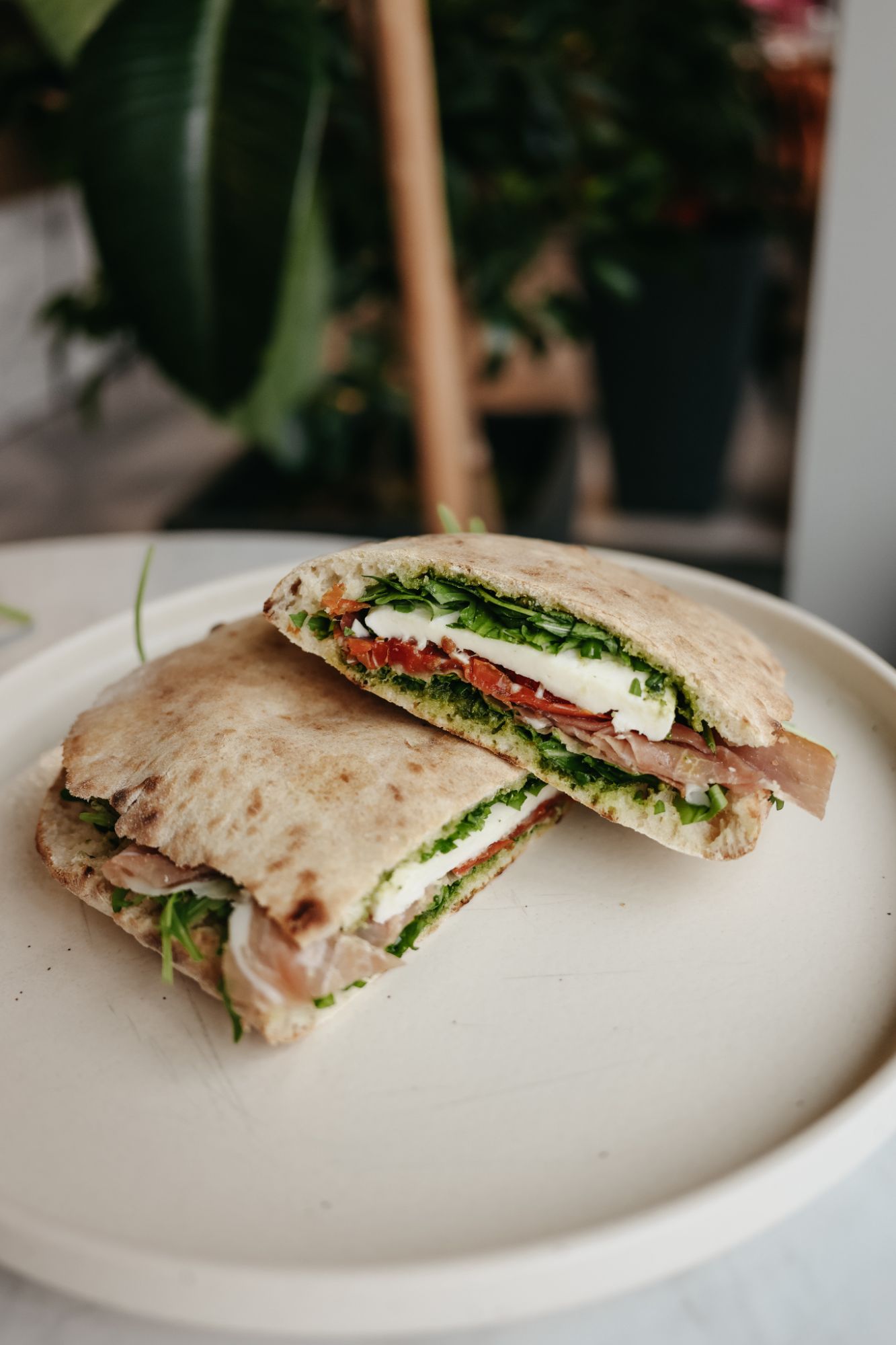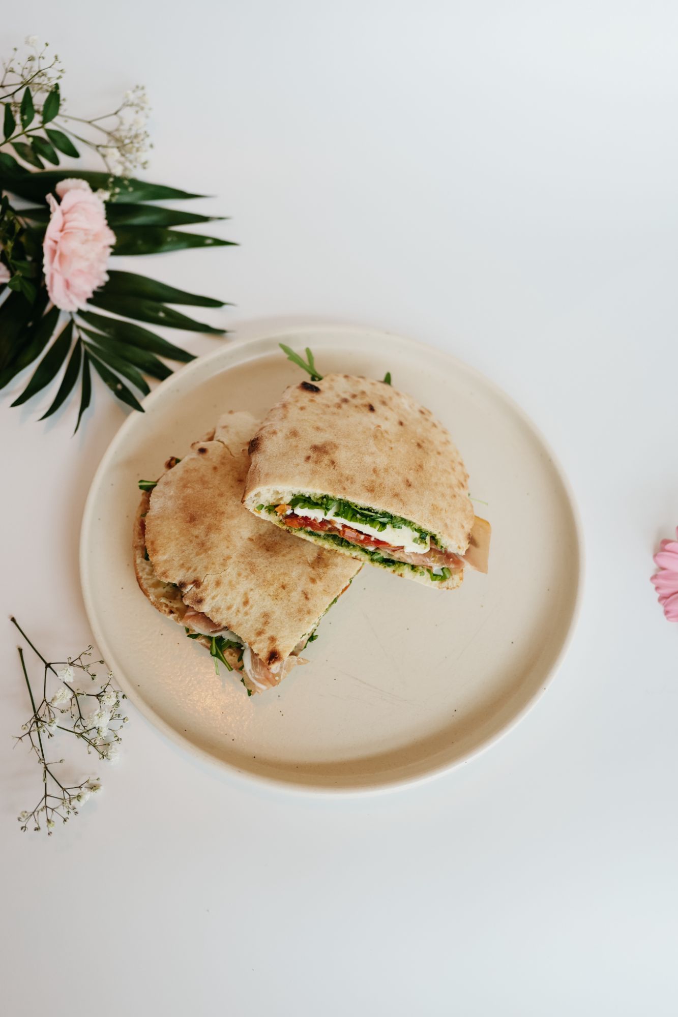 mix sałat, rostbef wołowy, cebulka piklowana, pomidorki cherry, pestki słonecznika, Grana Padano DOP, foccacia -