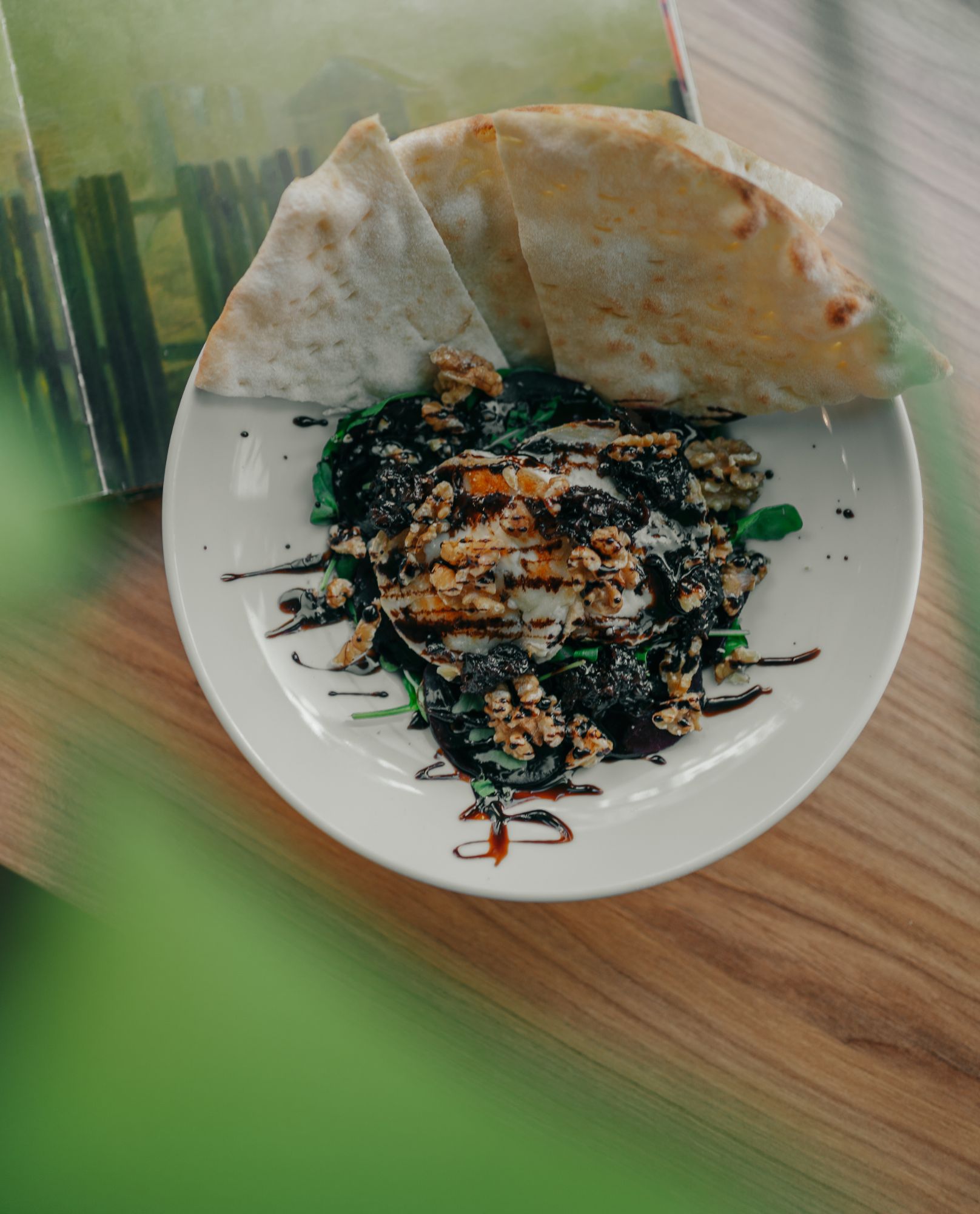 mix sałat, kremowy ser burrata, pomidorki cherry, oliwki leccino, grillowane karczochy, krem balsamiczny, foccacia -
